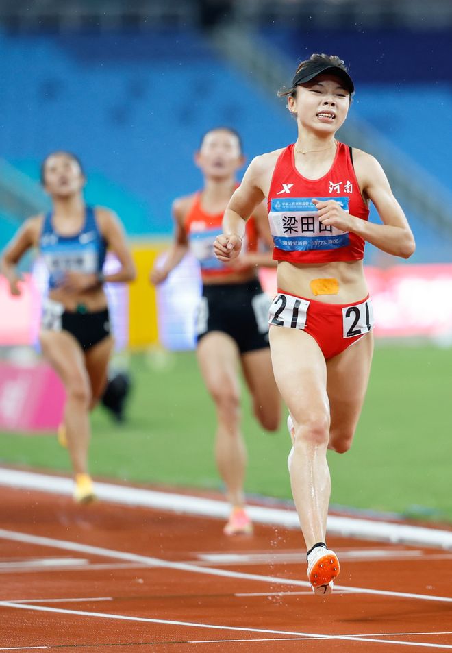 全运会对每一位专业队选手的意义不言而喻。自从2019年进入河南队,梁田田就知道,自己需要金牌——不仅是证明实力,也是要改变在队中的处境,比如获得编制和更好的发展。梁田田也想赚钱补贴家用,在家里,有辛苦劳作的爸妈,还有双胞胎弟弟和小她10岁的妹妹以及行动不太方便的爷爷。 对梁田田而言,让自己在过去四年漫长而重复的坚持下去,最大的动力就是——全运会冠军,而且她的目标一直就是5000米和10000米两枚金牌。 2024年在杭州进行了一站全国冠军赛,那时跟跟梁田田聊到日常训练时,她说道,不管是在凤凰岭还是青海多巴基地训练,很多时候练完后累到饭也吃不进去,话也不想多说。 在全运会前,参加全国比赛的梁田田 身体疲惫到极致时,梁田田偶尔也会产生些许动摇——因为这个过程实在太过艰难。但她说,那种状况下,脑海中有另一个自己跳出来,把因为痛苦而想放弃的自己拉回现实中。她知道,自己待解锁的任务和终极目标都没完成。她始终告诉自己——我必须拿到金牌,再多的苦,都得咽下去。 梁田田有一个特质,就是不紧张。不管是初出茅庐参加第一场国家级别的比赛,还是今年出发广州参加人生第一次全运会,她都毫不紧张。临近全运会的日子,她内心唯一的波澜来自于——比赛怎么还不开始。她迫不及待想站上赛场。 回顾在广州进行的全运会,5000米和1万米两个项目,哪场对梁田田更难一些?她的回答是:如果5000米拿到金牌,她坚信自己1万米也可以拿到。这种感觉就像武侠小说,打通第一关后,第二关就万山无阻了。