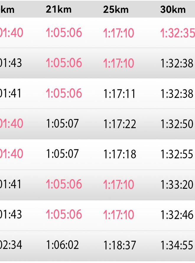 比赛前半程,刘敏状态火热,一直处在国内领先位置。她在男子选手的陪同下,一路领跑。25公里时,刘敏的预计完赛时间甚至指向了2:27:35,有望大幅刷新PB。