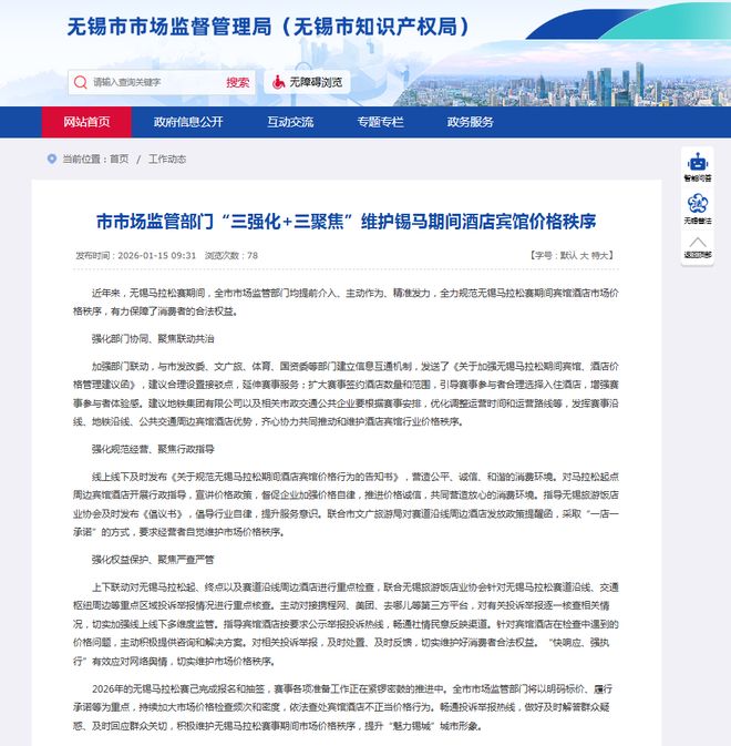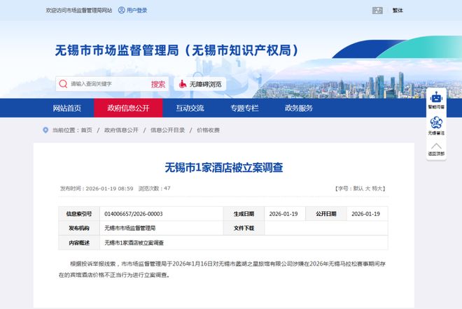 从更大的范围来看,体坛经济观察在小红书平台上搜索发现,吐槽无锡当地酒店涨价的帖文并不是少数。“同一间房平时271元,锡马前一晚872元,涨了3倍多……”有网友分享并晒出了无锡一酒店的价格日历图。 众多跑者的抱怨也引起了有关部门的积极响应。无锡市市场监管局、市文广旅游局在1月15日发布了《关于规范无锡马拉松期间酒店宾馆价格行为的告知书》,对酒店宾馆经营行为作出明确要求。 对于不严格遵守规定的无锡酒店,市场监管部门也迅速作出了回应。1月16日,无锡市市场监督管理对无锡市蠡湖之星旅馆有限公司涉嫌在2026年无锡马拉松赛事期间存在的宾馆酒店价格不正当行为进行立案调查。 从更宏观的角度来看,一座城市在举办重大比赛期间的差旅问题,特别是住宿的价格,一直是老生常谈的话题。一方面,这代表着赛事的影响力确实无出其右,价格波动反映的是大家都想来看比赛或者参加比赛;另一方面,一座城市短时间内涌入大量的人流,必然会造成基础设施的供大于求,继而造成了酒店和交通因为供需关系不平衡而上涨。 体坛经济观察认为,锡马的火爆氛围和无锡的酒店涨价并不是个例,这更像是过去几年国内赛事经济爆发的问题缩影,凸显出的是赛事经济背后的结构性矛盾。城市固然受益于赛事经济产生的多元效益,但同时也需要警惕赛事经济衍生的各种难题。 报名人数创新纪录,锡马吸引力在哪? 在商言商,无锡酒店在锡马期间涨价,本质上是一个极其简单的经济学模型,即极度稀缺的供给遇上了短时间内爆发的需求。 因此客观来说,无锡酒店在锡马期间涨价并不意外。首先让我们看一个数据,从锡马的报名热度来看,我们就能够看出跑者们对于酒店的需求有多大。 数据显示,今年的锡马报名人数超过了49万人,这一数字也创下了国内赛事的新纪录。最终的参赛规模为3.5万人。 这3.5万人的规模还包含了大量的非无锡本地选手。数据显示,今年的锡马中签选手来自75个国家和地区,本地选手仅占8.6%,超过九成为外地跑者。